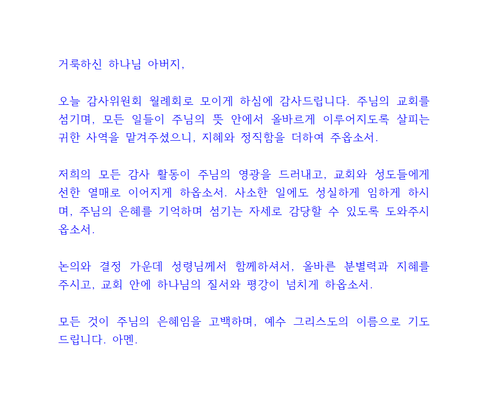 감사위원회 월례회 기도문