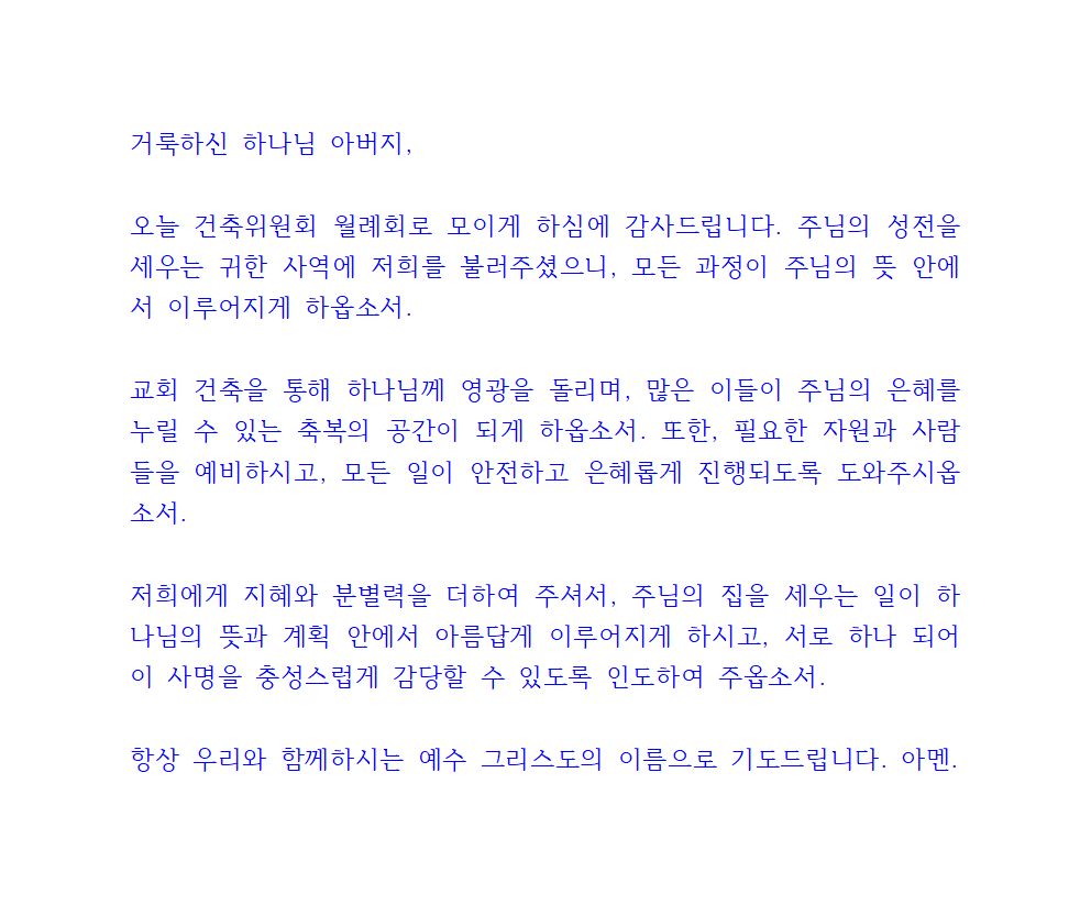 건축위원회 월례회 기도문