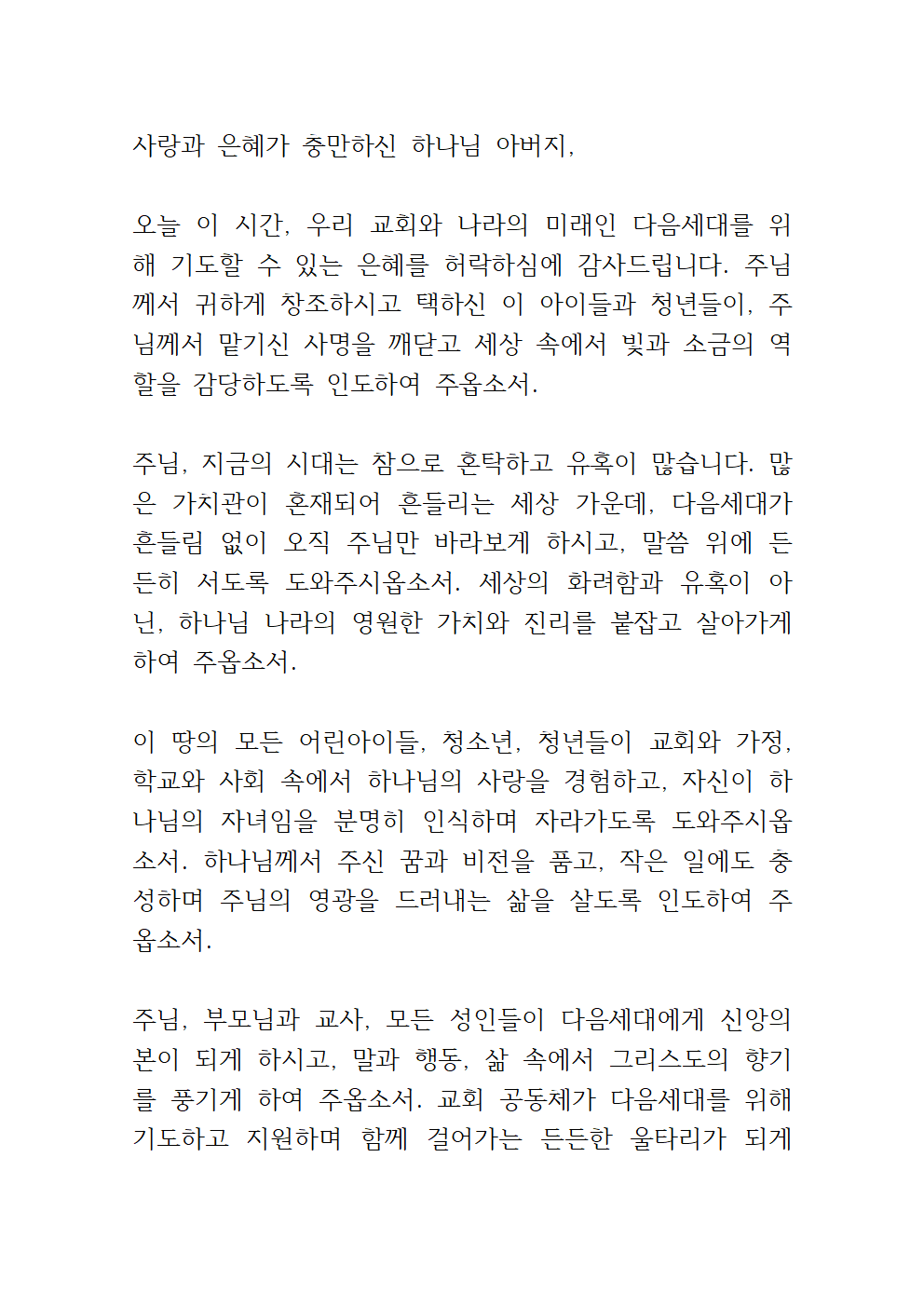 교회학교, 다음세대를 위한 기도문 (pdf)