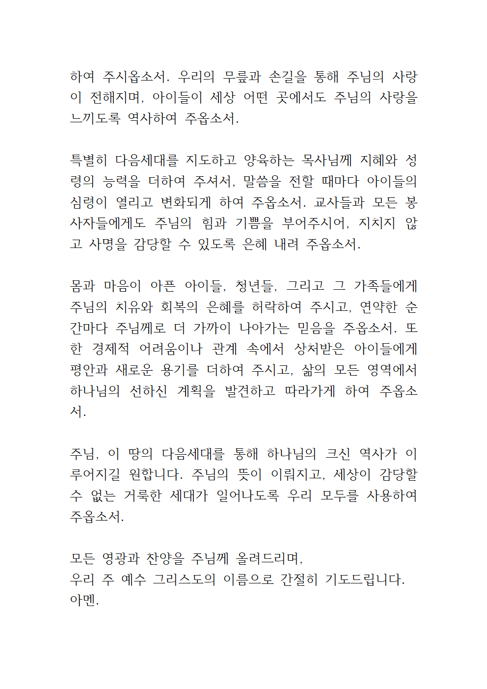 다음세대를 위한 기도문 (pdf 포함)
