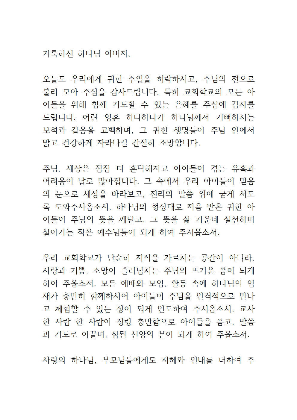 ※ 교회학교, 다음세대를 위한 기도 시 아래의 기도문들을 참고해서 기도해 보세요.