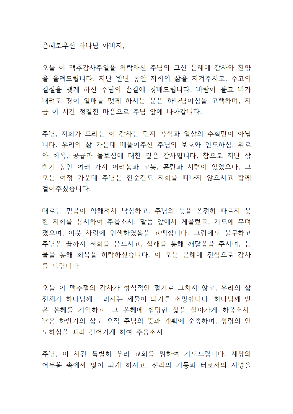 맥추감사주일 대표기도문 (pdf 파일 포함)