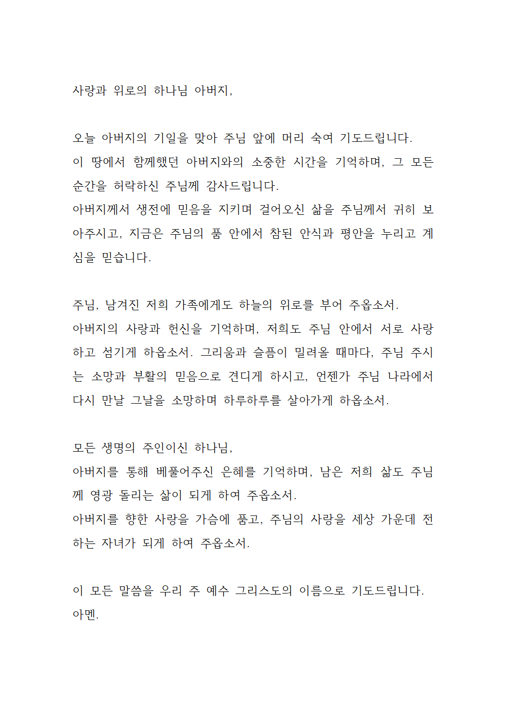 아버지 기일 기도문