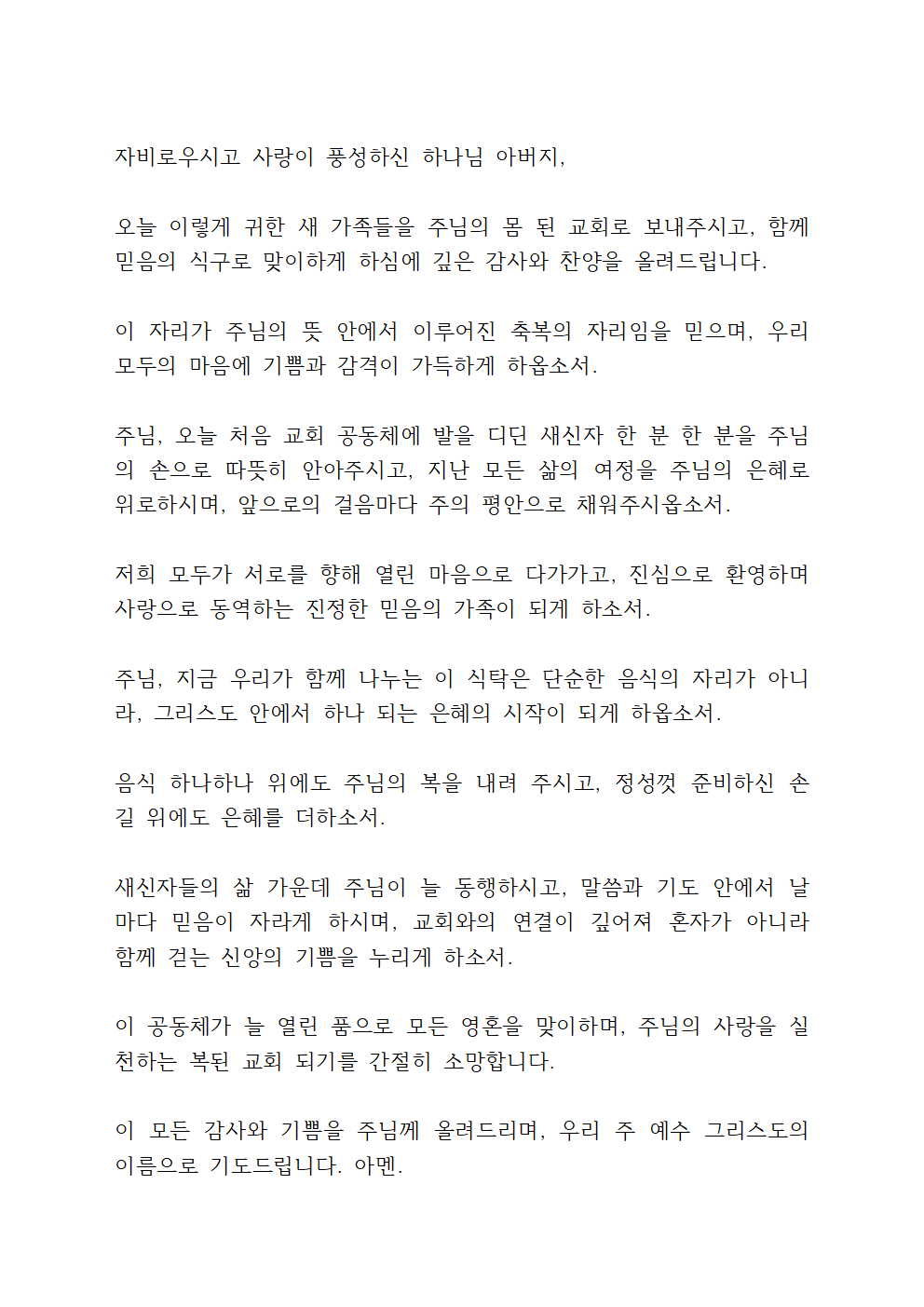 새신자 환영 식사 기도문