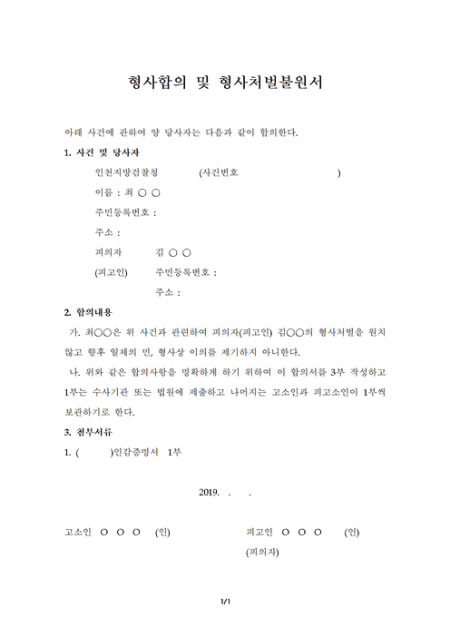 ※ 각 종류별 처벌 불원서 양식은 다음과 같습니다.