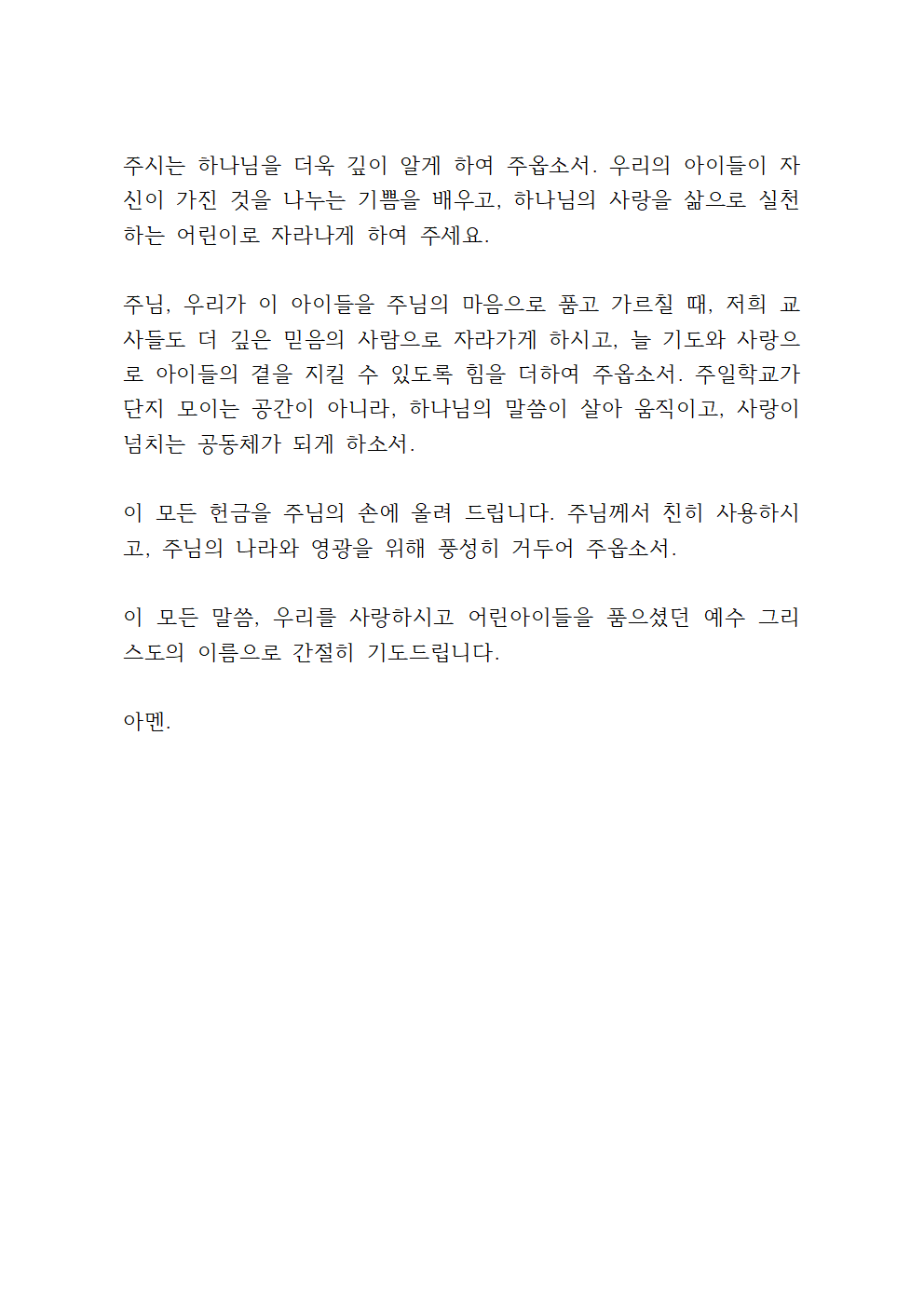 주일학교 헌금 기도문