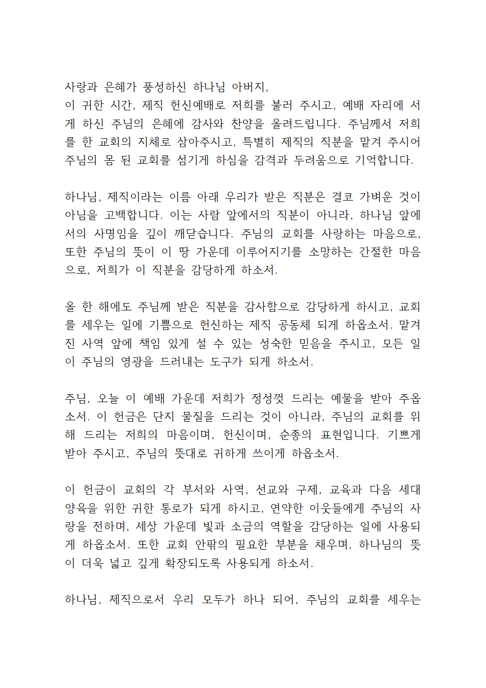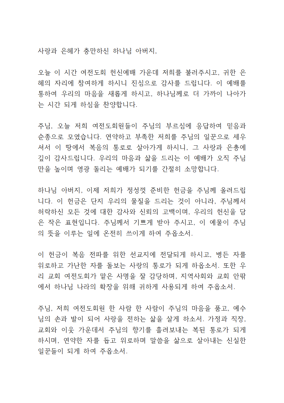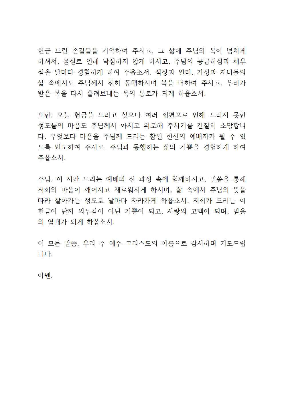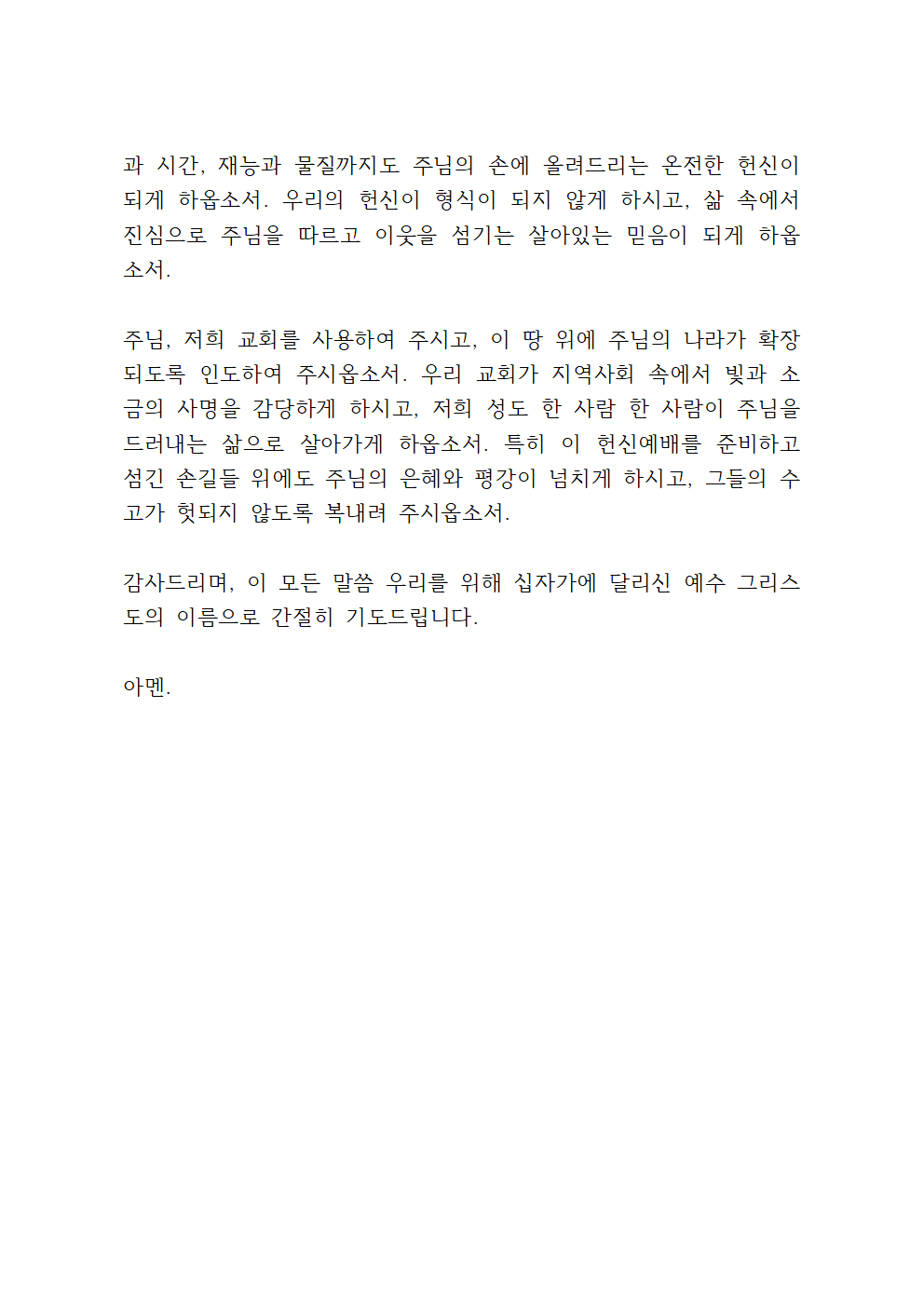 헌신예배 헌금 기도문 모음 (pdf 파일)