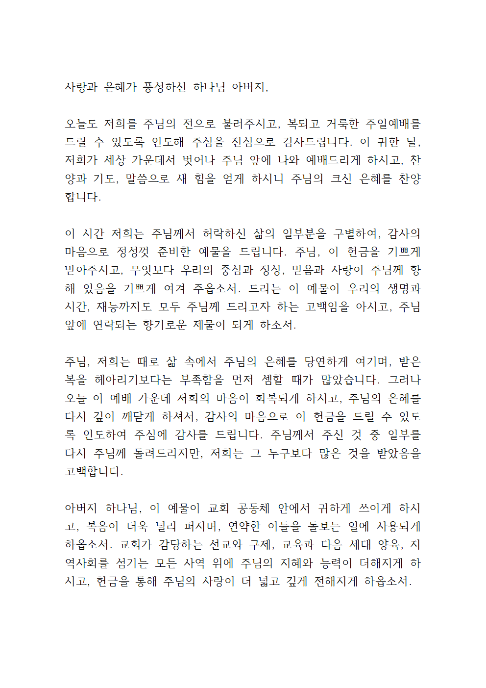 주일 헌금 기도문