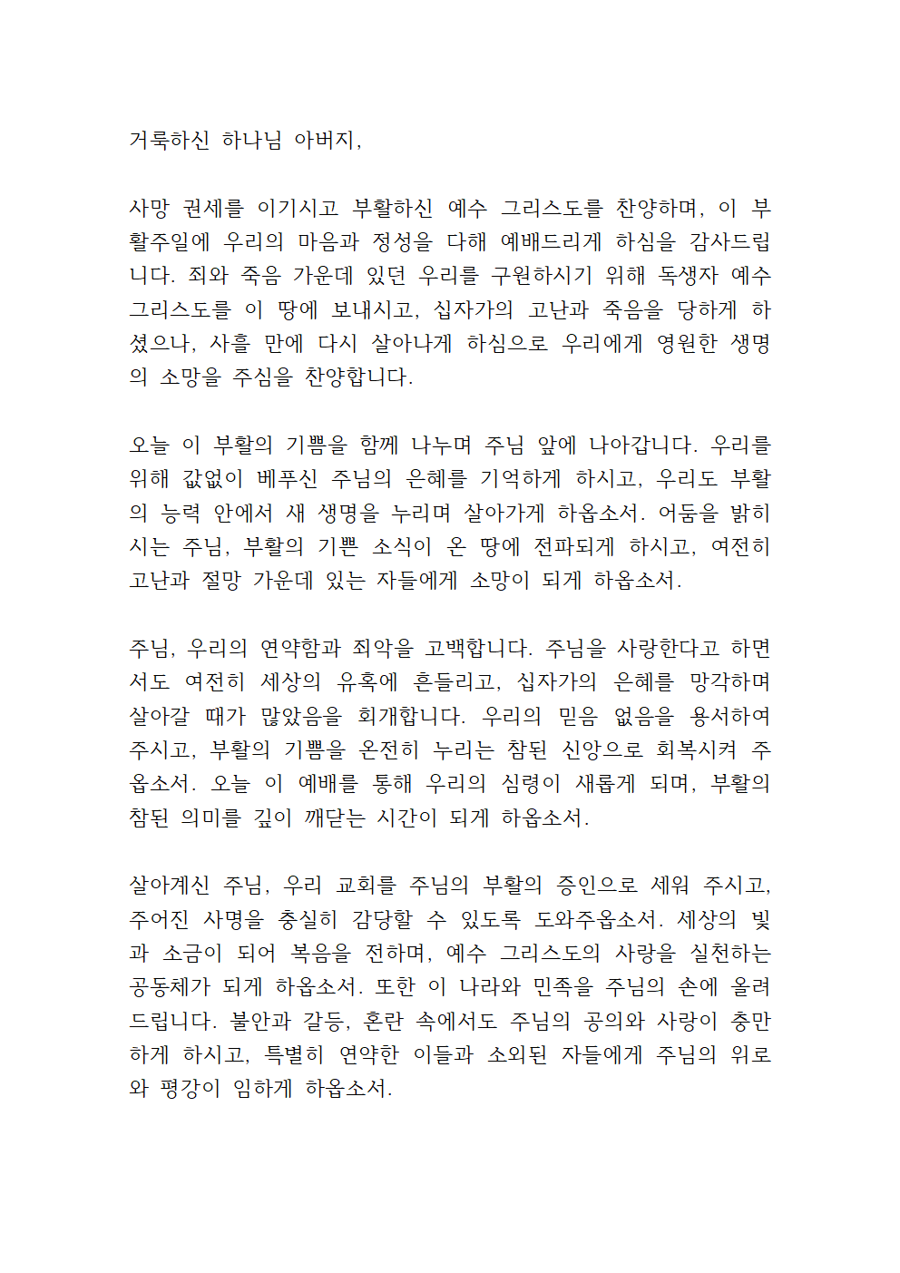 이번 글에서는 4월 주일예배 대표기도문 모음(hwp파일)을 안내해 드리겠습니다.