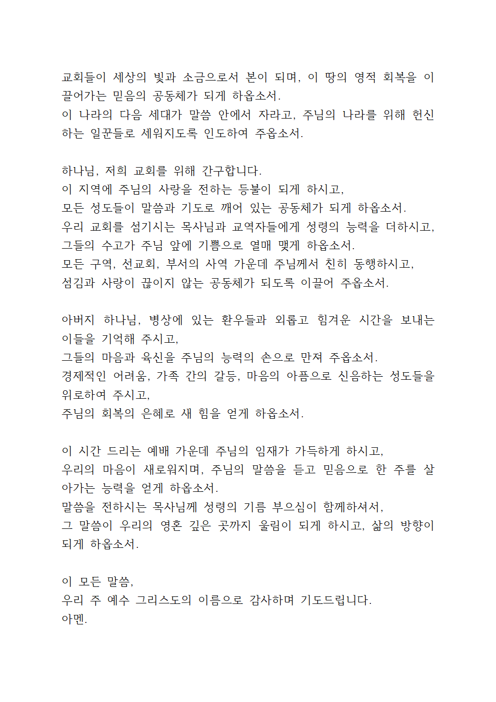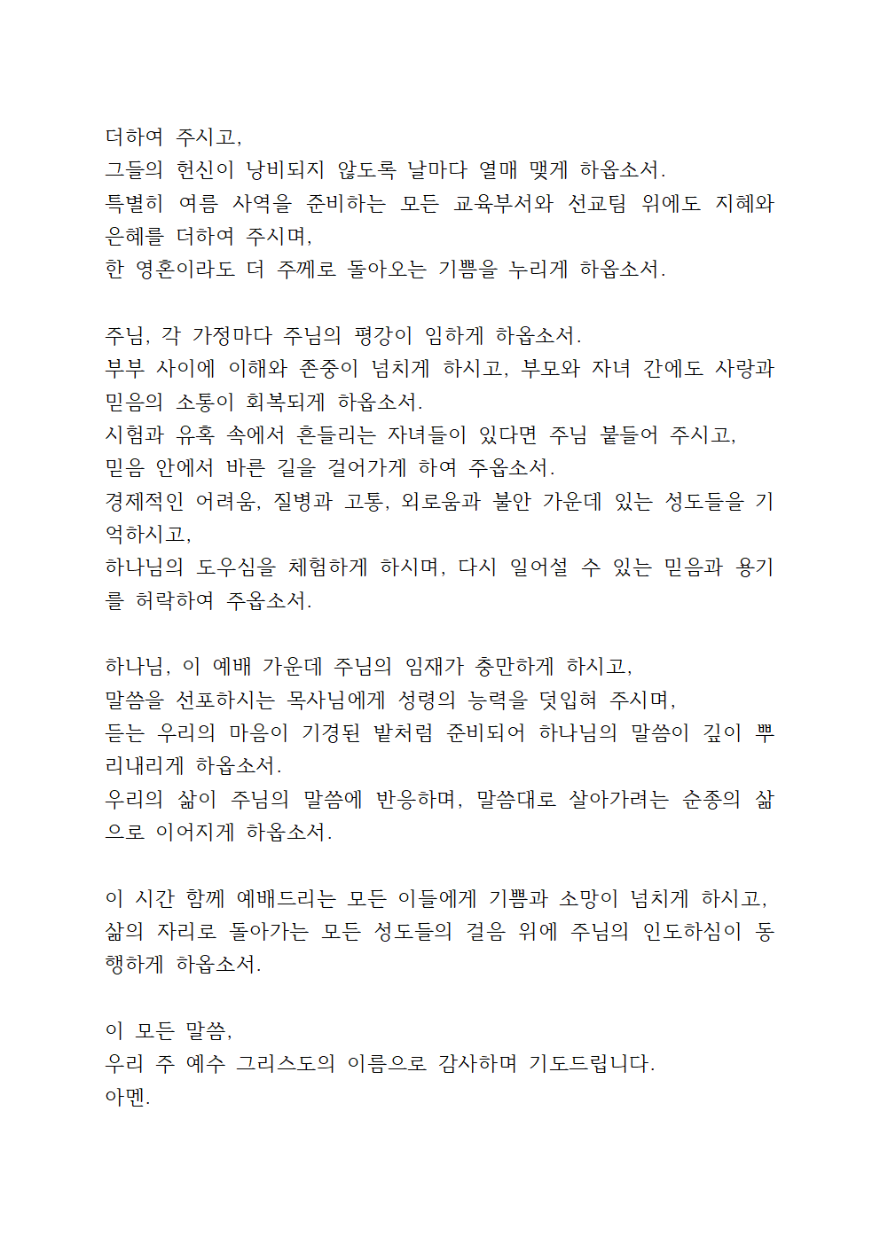 이 모든 말씀, 우리 주 예수 그리스도의 이름으로 감사하며 간절히 기도드립니다. 아멘.