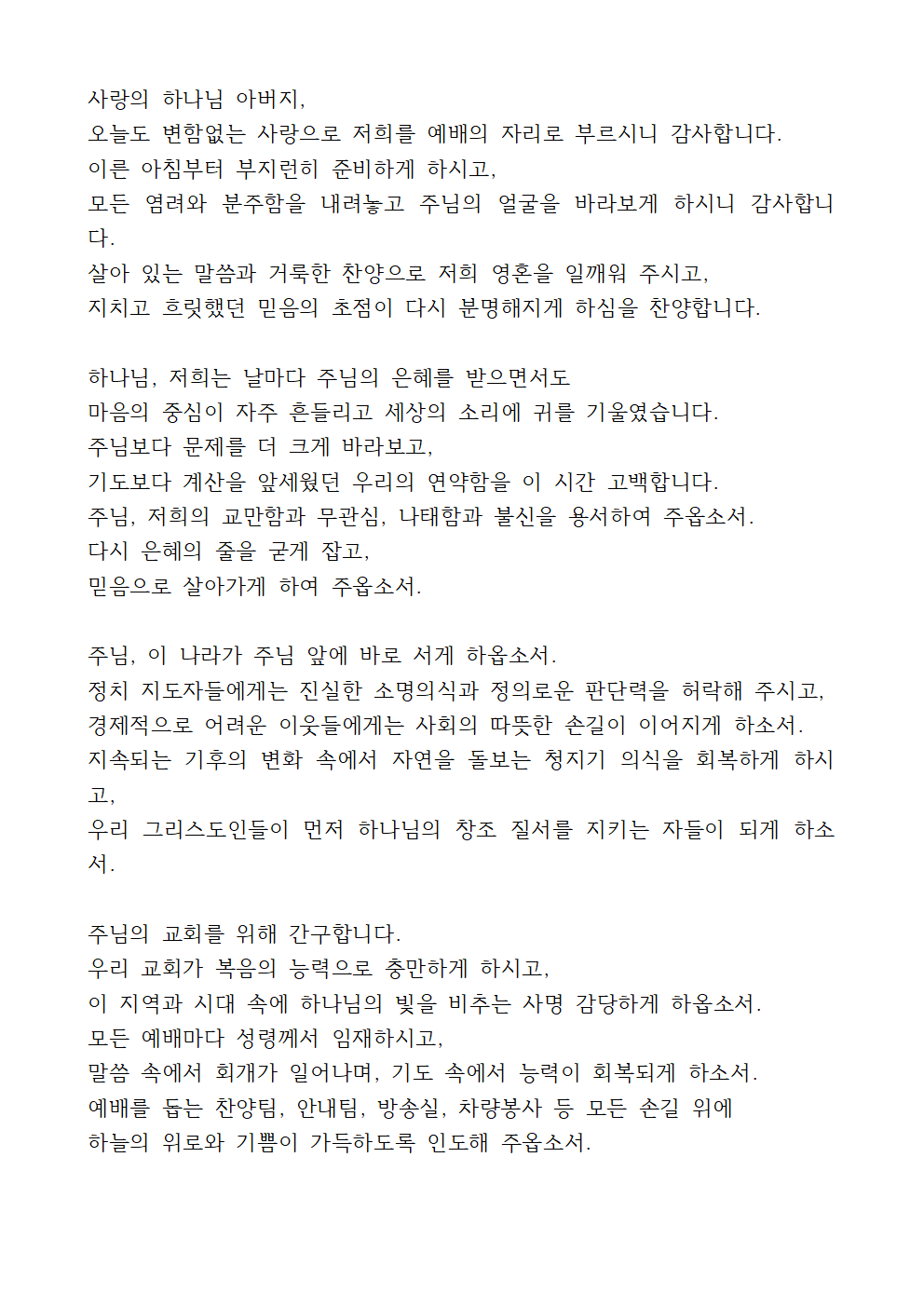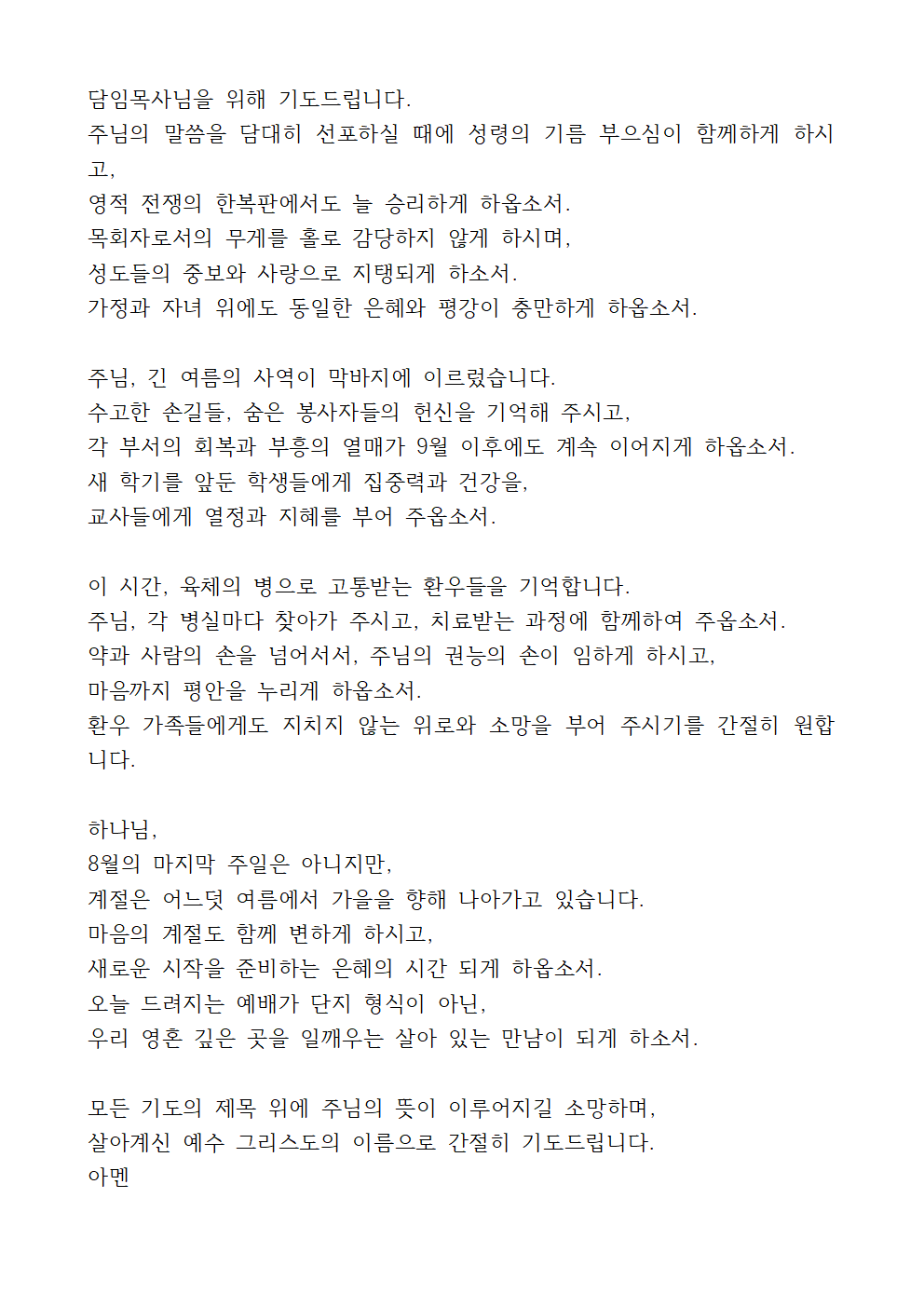 8월 넷째 주일 대표기도문 (2)