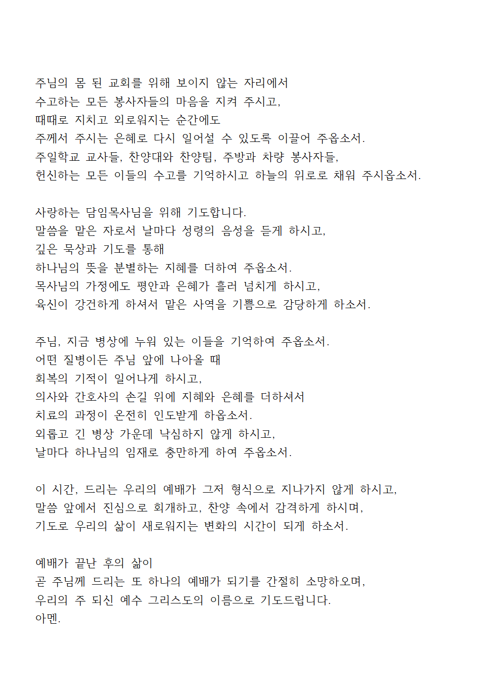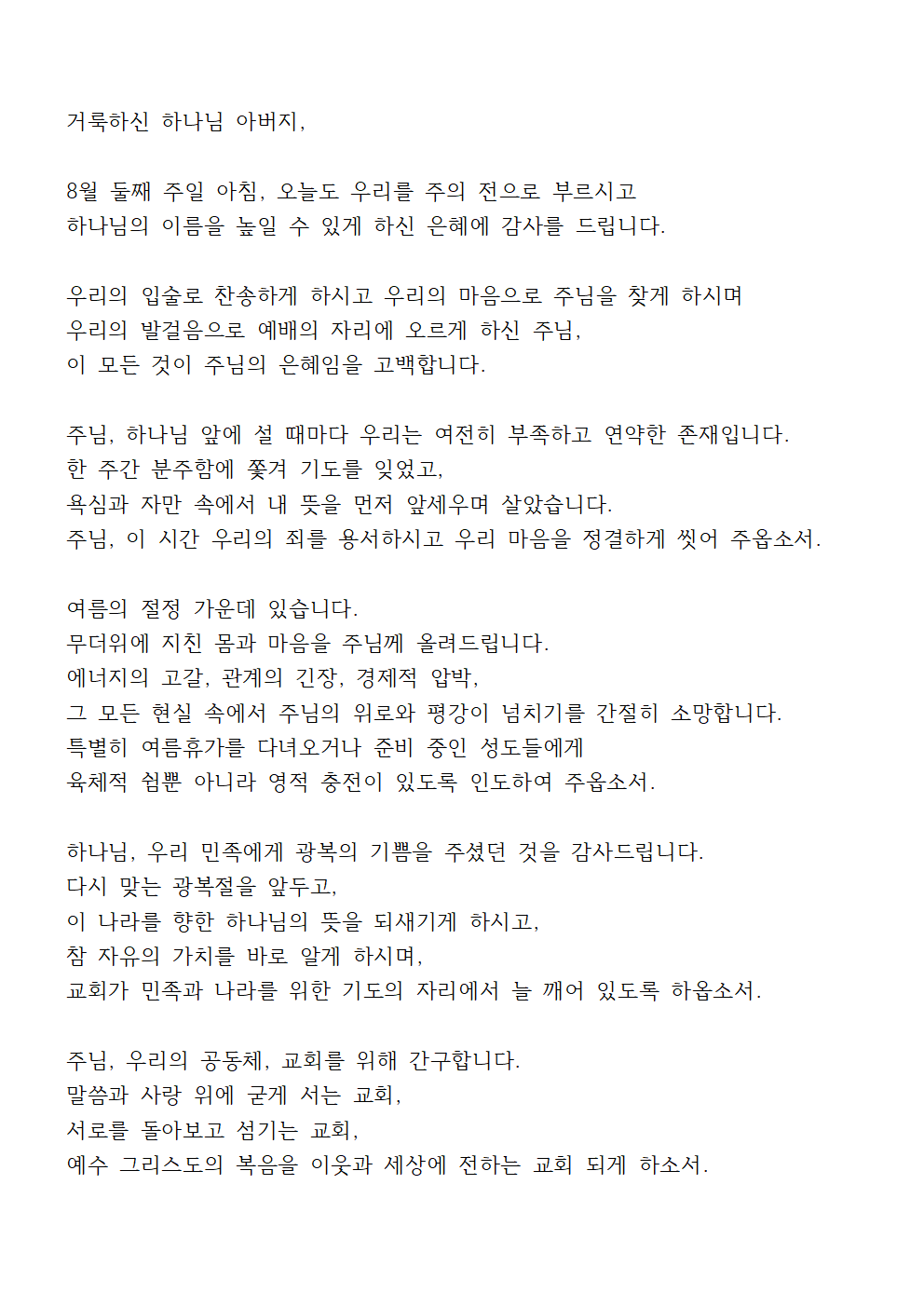 이번 글에서는 8월 둘째주일 대표기도문을 안내해 드리겠습니다.