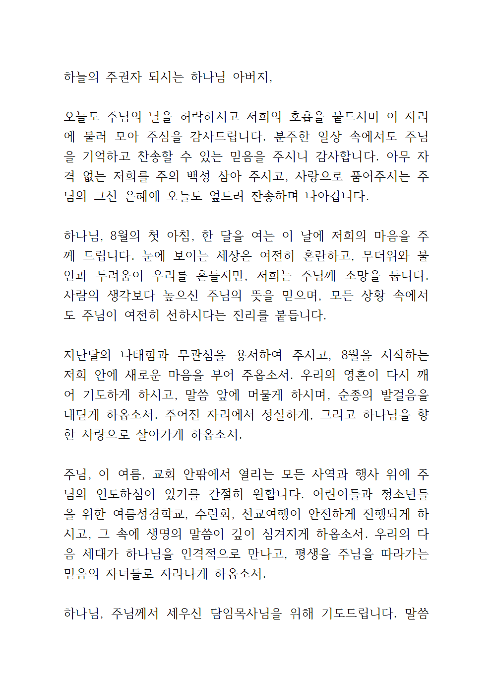 '8월 첫주일 대표기도문 (한글, PDF 파일)'