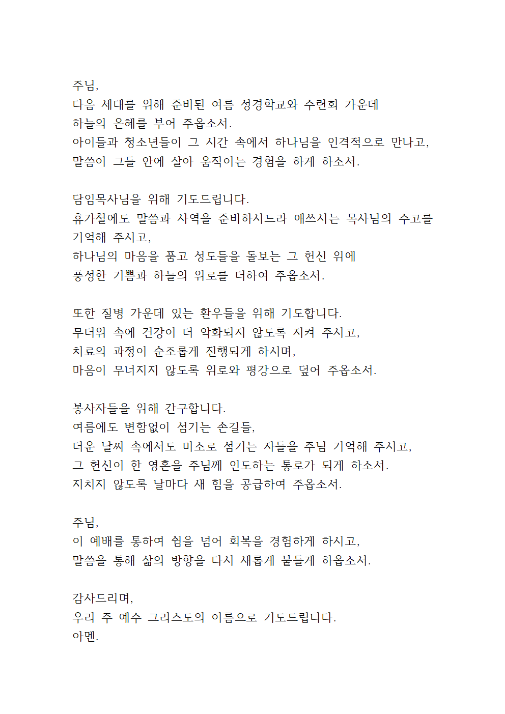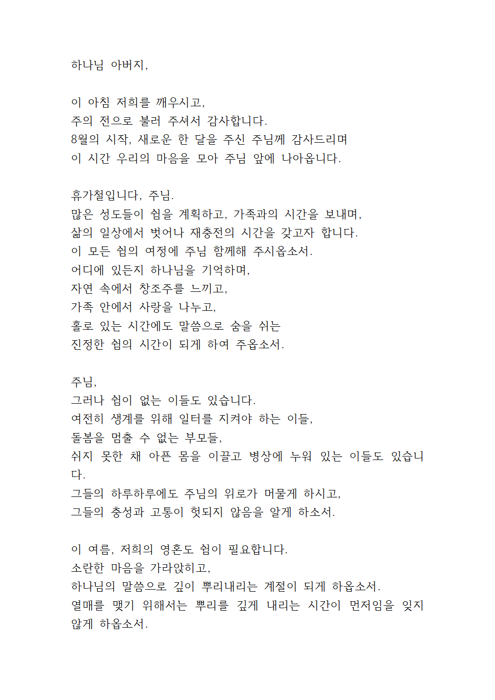 8월 첫째 주일낮예배 대표기도문 (pdf 파일)
