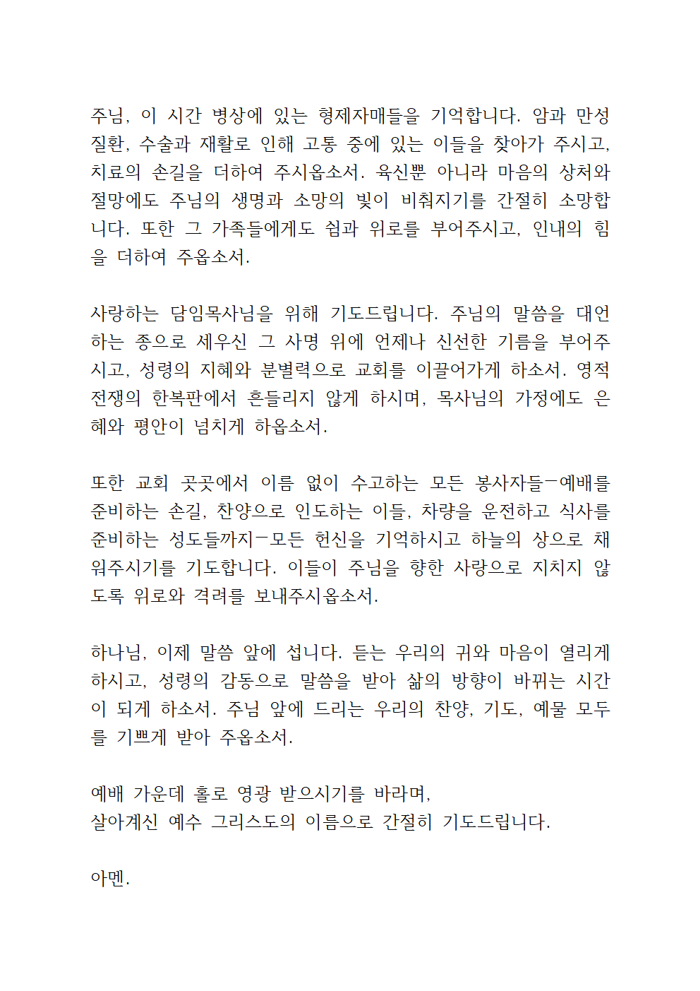 8월 1주 대표기도문